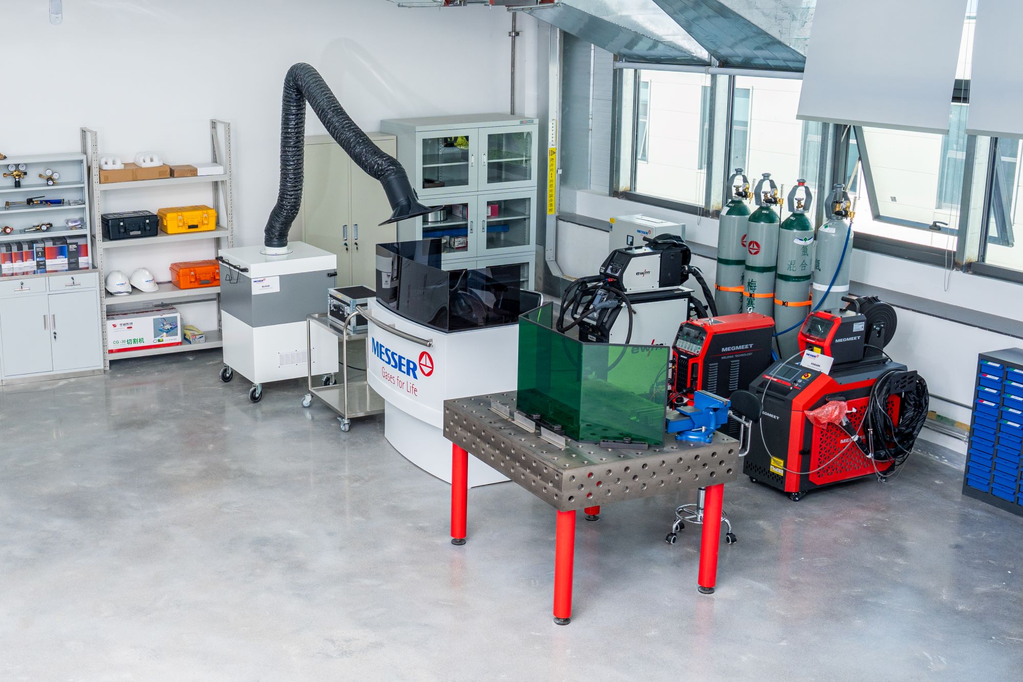 焊接实验室配备MAG焊机、TIG焊机、手持式激光切割机及氢气切割设备,可用于为客户提供培训与演示,并与客户共同优化工艺参数,选择最适合的焊接方式。实验室还配备多种先进测试设备,能够帮助团队精准分析焊接问题的根本原因。